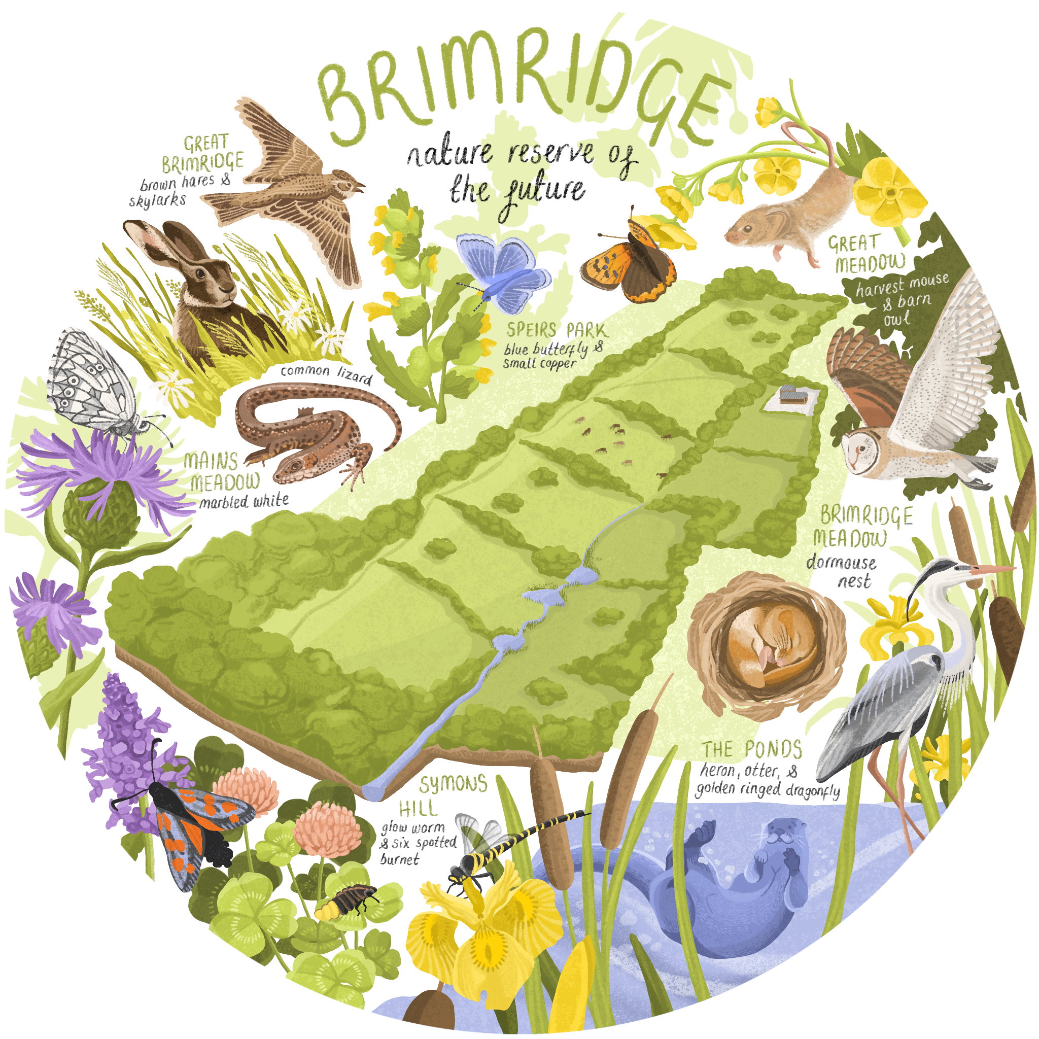 I was commissioned by Devon Wildlife Trust’s ‘Avon Valley Project’ to create an illustration for a landowner they have worked with for the past 20 years to establish beautiful wildflower meadows. This was an absolute privilege and full-circle moment for me, having also previously monitored these special meadows when interning with DWT back in 2019. The illustration includes the lay of the land, as well as some of the flora and fauna which has made it home.